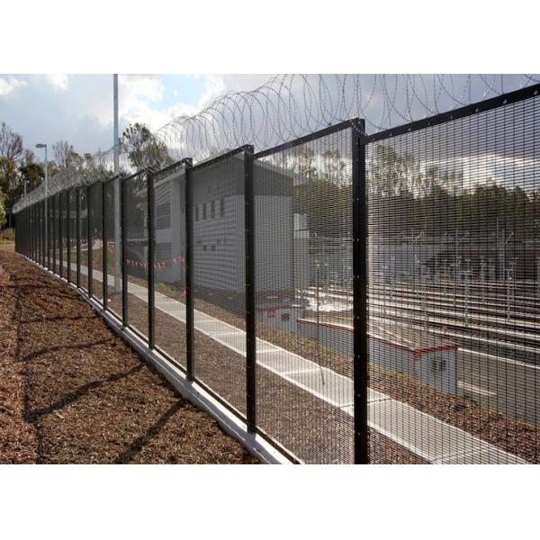 Black PVC Coated Welded Wire Mesh Rigid Anti Climb Security Fence Panel 11 Gauge Images |